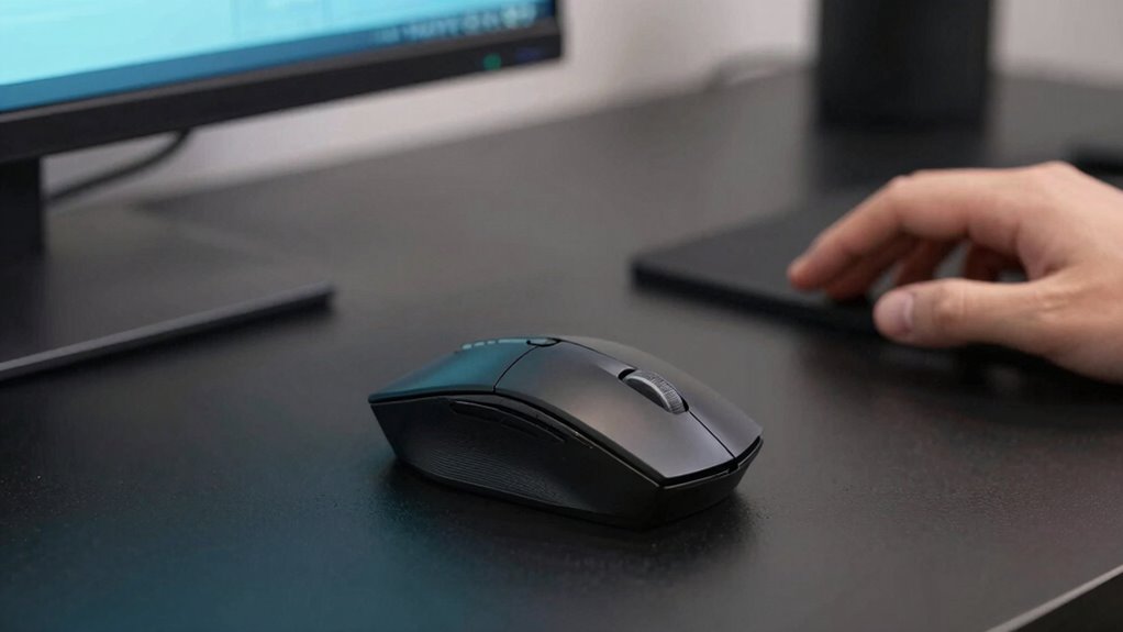 You should recalibrate your mouse sensitivity whenever you notice discomfort or decreased accuracy, especially if your ergonomic mouse design or hand positioning techniques change. Doing this regularly helps guarantee your settings match your gameplay style, reducing reaching and gripping strain. Adjust settings after significant hardware changes or long gaming sessions. Keep your sensitivity aligned with your comfort to improve precision and prevent fatigue, making your gaming experience more enjoyable.