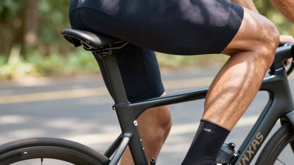 You’ll find that seat height does influence seat distance adjustments, as ergonomic considerations come into play. When you’re setting your seat height, keep in mind that a proper saddle width also impacts your overall comfort. Adjusting both guarantees your knees aren’t overstretched or cramped, creating a smoother ride. By fine-tuning these aspects together, you’ll enjoy better alignment, reduced strain, and a more enjoyable cycling experience.