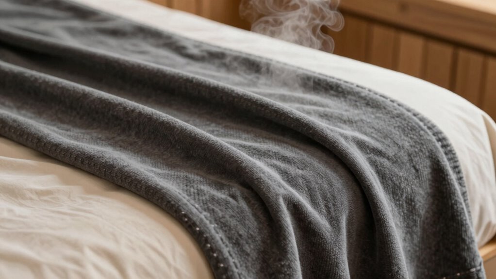 Although sauna blankets are designed to provide a relaxing heat experience, they do carry potential overheating risks if not used properly. To avoid overheating, it’s essential to focus on overheating prevention and maintain proper thermal regulation. If you stay in the blanket too long or set the temperature too high, you risk overheating, which can lead to dizziness, nausea, or dehydration. Always monitor your body’s response and follow recommended session times. Be cautious if you have underlying health conditions that affect heat tolerance. To stay safe, consider these tips: