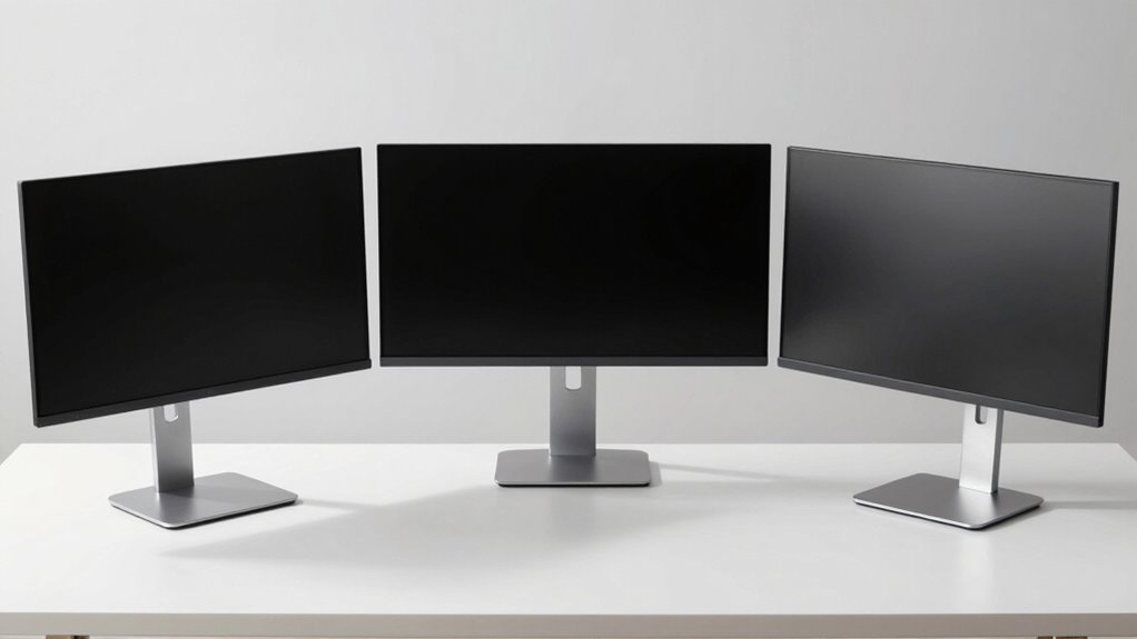 If you’re searching for the 11 best adjustable monitor stands in premium aluminum for 2026, I’ve got you covered. These stands combine sleek design, durability, and ergonomic features to improve your workspace. They support various monitor sizes, offer flexible adjustments, and guarantee stability with quality materials like CNC-machined aluminum. Whether for home or office, these options help you stay comfortable and organized. Continue along and discover the top picks that fit your needs perfectly.
