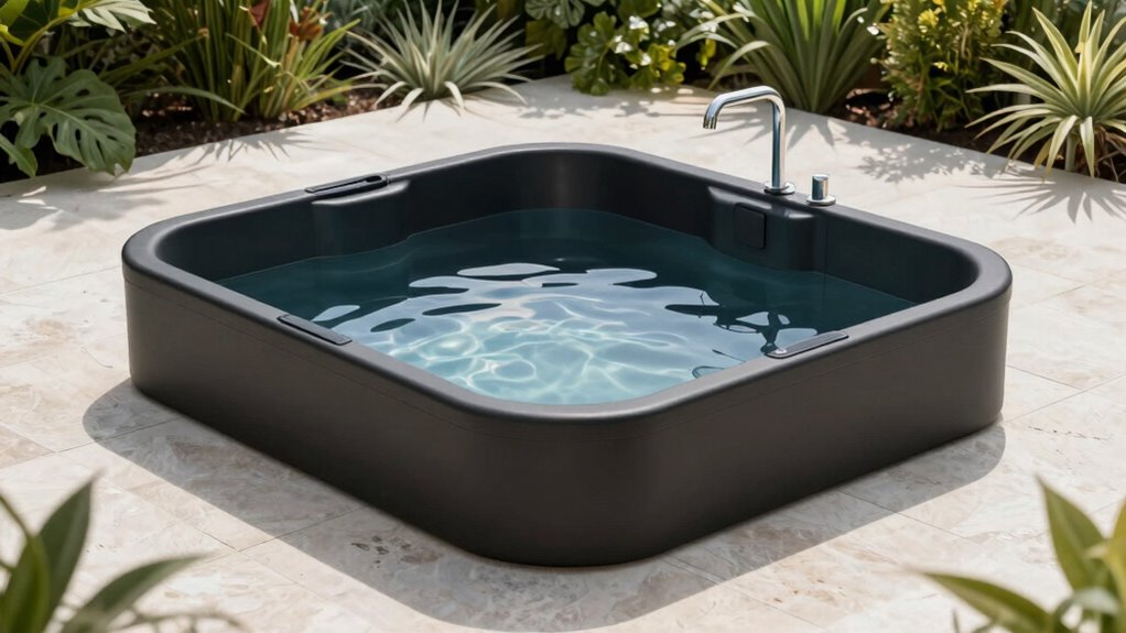 Having portability features makes it easy to enjoy your cold plunge tub anywhere, but maintaining the right water temperature is equally important for effective therapy. Precise temperature control lets you set and sustain specific water temperatures to match your recovery goals. Many advanced models include digital thermostats or smart touchscreen controls that allow accurate adjustments within a range from -86°F to 140°F. Consistent regulation minimizes fluctuations during your session, ensuring safety and maximizing therapeutic benefits. Proper insulation, like multi-layer or foam panels, helps maintain the desired temperature by reducing heat loss and extending water stability. Some tubs also support external chillers or integrated systems, providing continuous, reliable temperature management for longer recovery routines. This combination ensures best possible therapy every time.