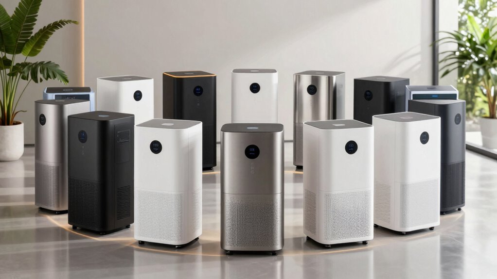 If you’re looking for the best premium dehumidifiers for humid climates in 2026, I’ve got you covered. I’ve reviewed models with advanced tech, smart controls, quiet operation, and suitable capacities for various room sizes. Whether you need a compact unit, Wi-Fi connectivity, or heavy-duty power, these options improve air quality and prevent mold. Stick with me, and you’ll discover detailed features to help you choose the perfect dehumidifier for your space.