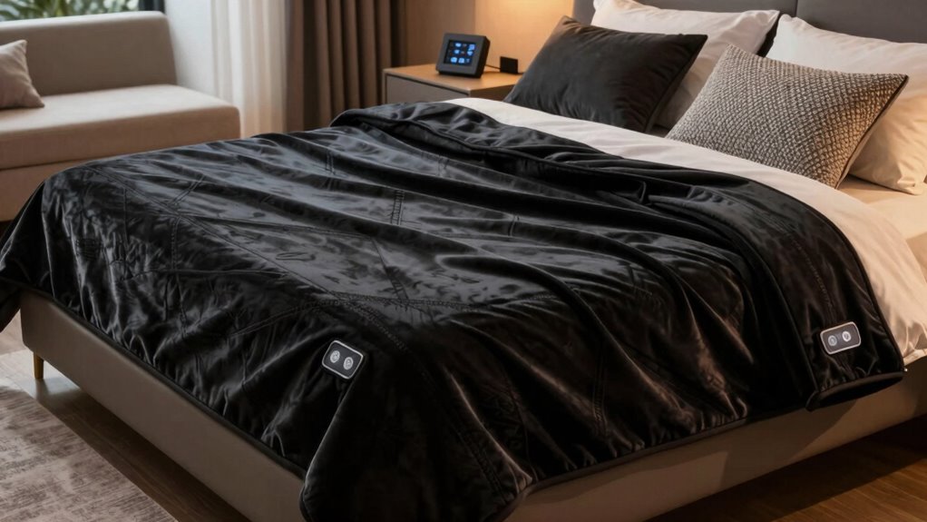 Dual controls can slightly affect heating consistency because each side has its own thermostat, which might not heat perfectly evenly. However, quality dual-control blankets are designed to distribute heat uniformly across both sides, so you typically won’t notice a big difference. I’ve found that choosing a well-made blanket with reliable controls guarantees consistent warmth, making it a great option for couples wanting personalized comfort without sacrificing even heat distribution.