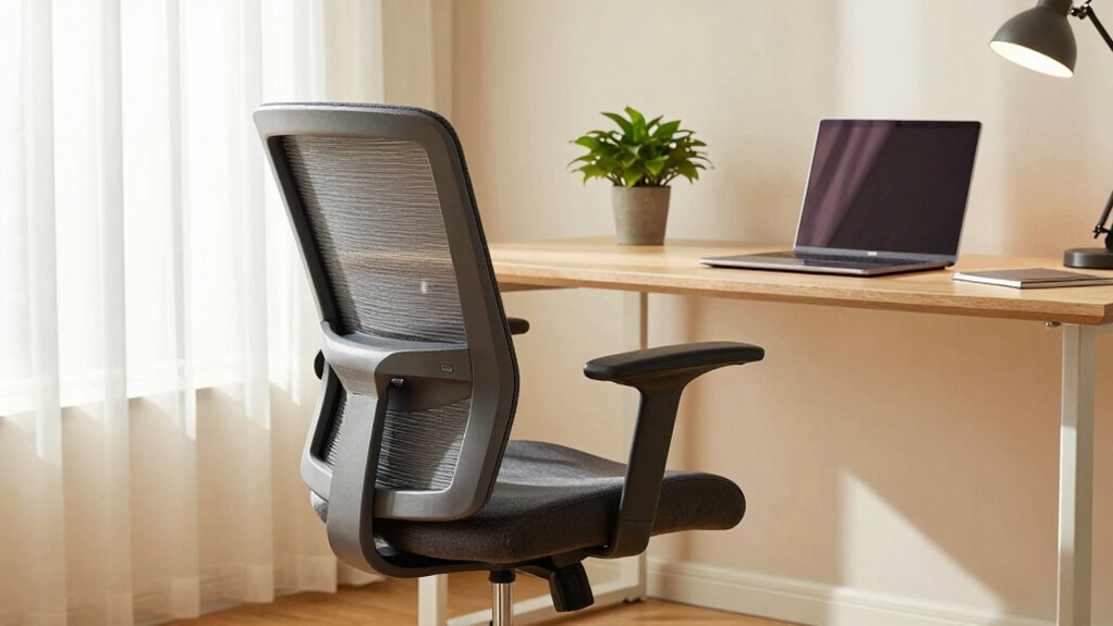 Adjustable armrests are a key feature to look for because they let you customize your chair to fit your workspace and personal comfort needs. Models like flip-up or 4D armrests offer flexibility by allowing you to adjust height, angle, and width, supporting different ergonomic requirements. Multi-directional armrests can swivel, pivot, or slide, giving you extra freedom to find the most comfortable position for various tasks. Space-saving features such as retractable or flip-up arms make it easier to slide your chair under desks, saving room and improving movement. Properly adjustable armrests help reduce shoulder and wrist strain during long hours at your computer, making your workday more comfortable and less fatiguing. Versatile armrests are essential for creating an ergonomic setup tailored to your needs.