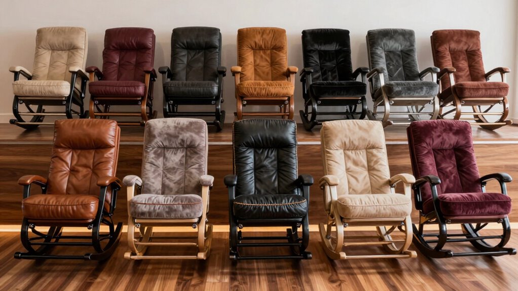 When choosing a footrest rocking premium, I look at the materials to guarantee durability and quality. I also consider ergonomic features and adjustability options for personalized comfort. Ultimately, safety, stability, and style compatibility are key to making the right choice.