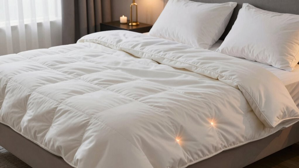A heated blanket with an accessible control panel makes adjusting settings effortless, especially when I’m cozy in bed. I look for large, clearly labeled buttons and a user-friendly interface so I can easily change temperatures without fumbling. If the blanket has dual controls, I want both sides to be accessible, ensuring both of us can adjust our preferred settings comfortably. A clear display that shows temperature and timer status is essential for quick reference, and illuminated controls or backlit displays improve visibility in low light. I also check that the control panel is securely attached and resistant to accidental adjustments or damage during use. This combination of features ensures I can operate the blanket smoothly and safely, adding to the overall comfort and convenience.