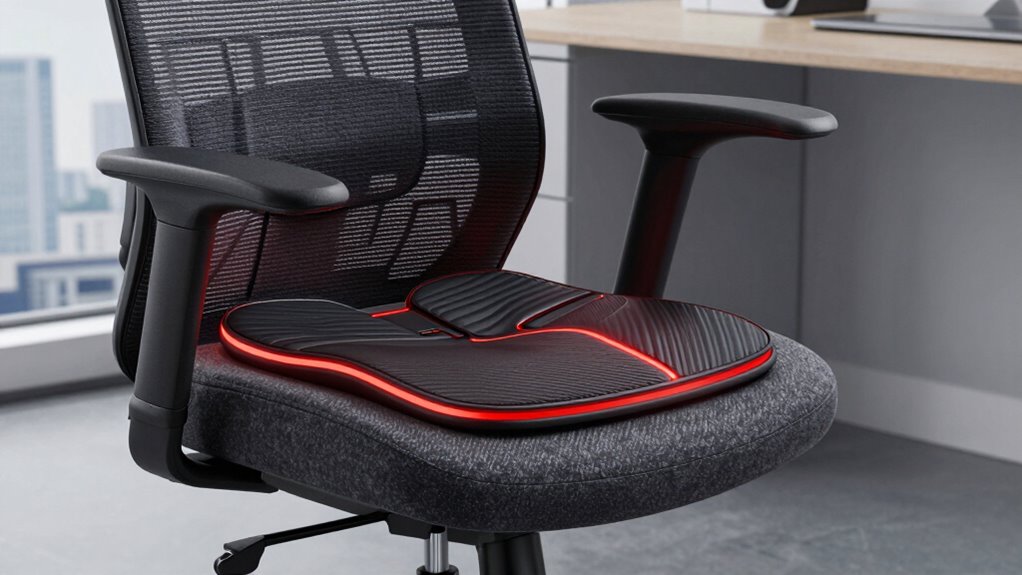 If you’re looking for the 15 best heated massage pads for office chairs in 2026, I’ve got you covered. These pads feature multi-zone heat, adjustable vibration, and customizable massage modes to target your back, hips, and shoulders effectively. They’re designed with durable, soft fabrics and easy controls, ensuring comfort and safety during long hours. Stick around, and you’ll discover all the top options to help you stay relaxed and focused at work.