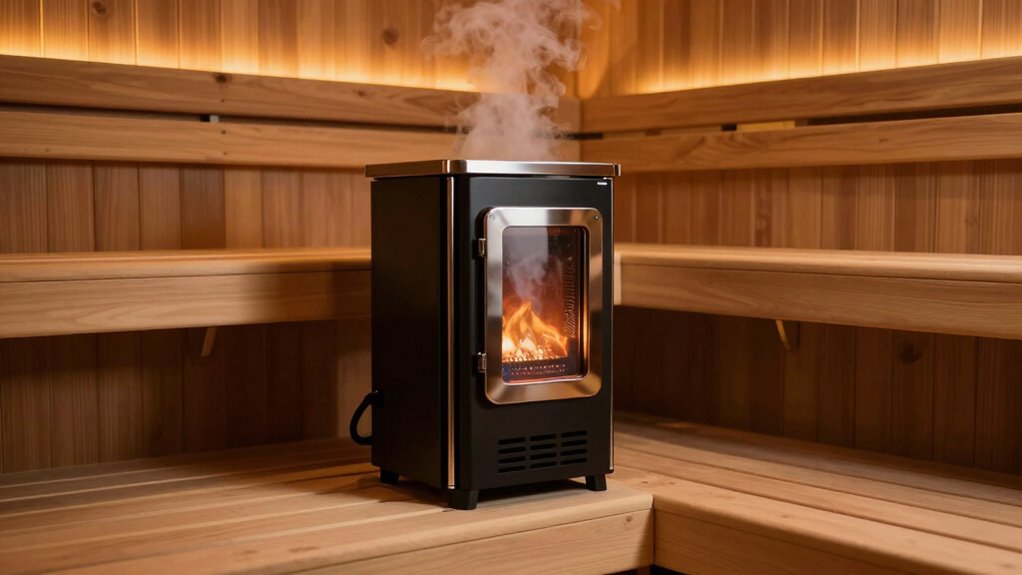 - Consider safety certifications and proper installation features to guarantee reliable, long-term performance in small saunas.